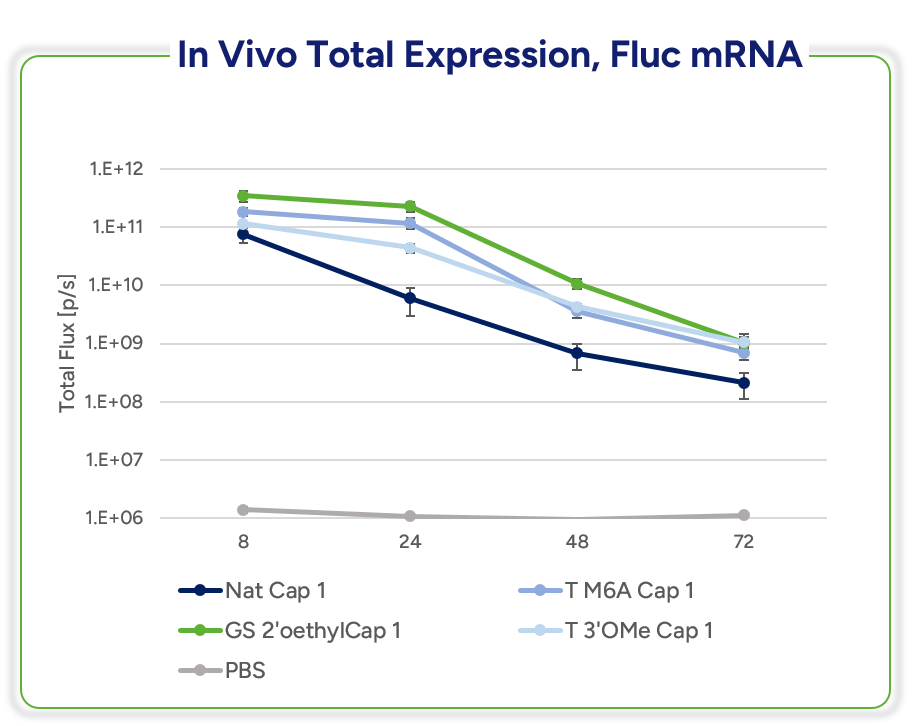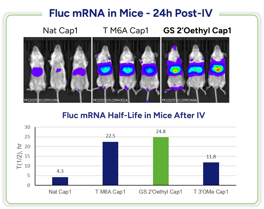 Novel 2’-O-Ethyl-capped RNA showed higher expression than natural Cap1 RNA, and slower clearance rate in vivo.
