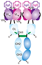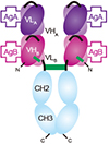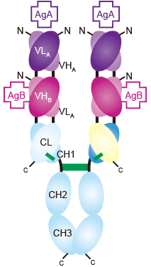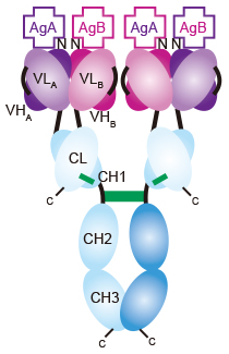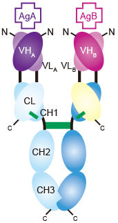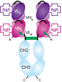 単一特異性IgGのVHとVLのN-末端に、特異性が異なる抗体のVHとVLがリンカーにより接合されたものです。